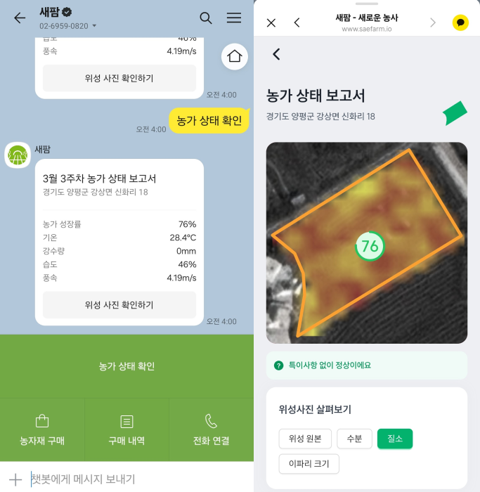 without installing an appThrough SAEFARM's KakaoTalk service, farm owners receive daily updates on the status of their plots.