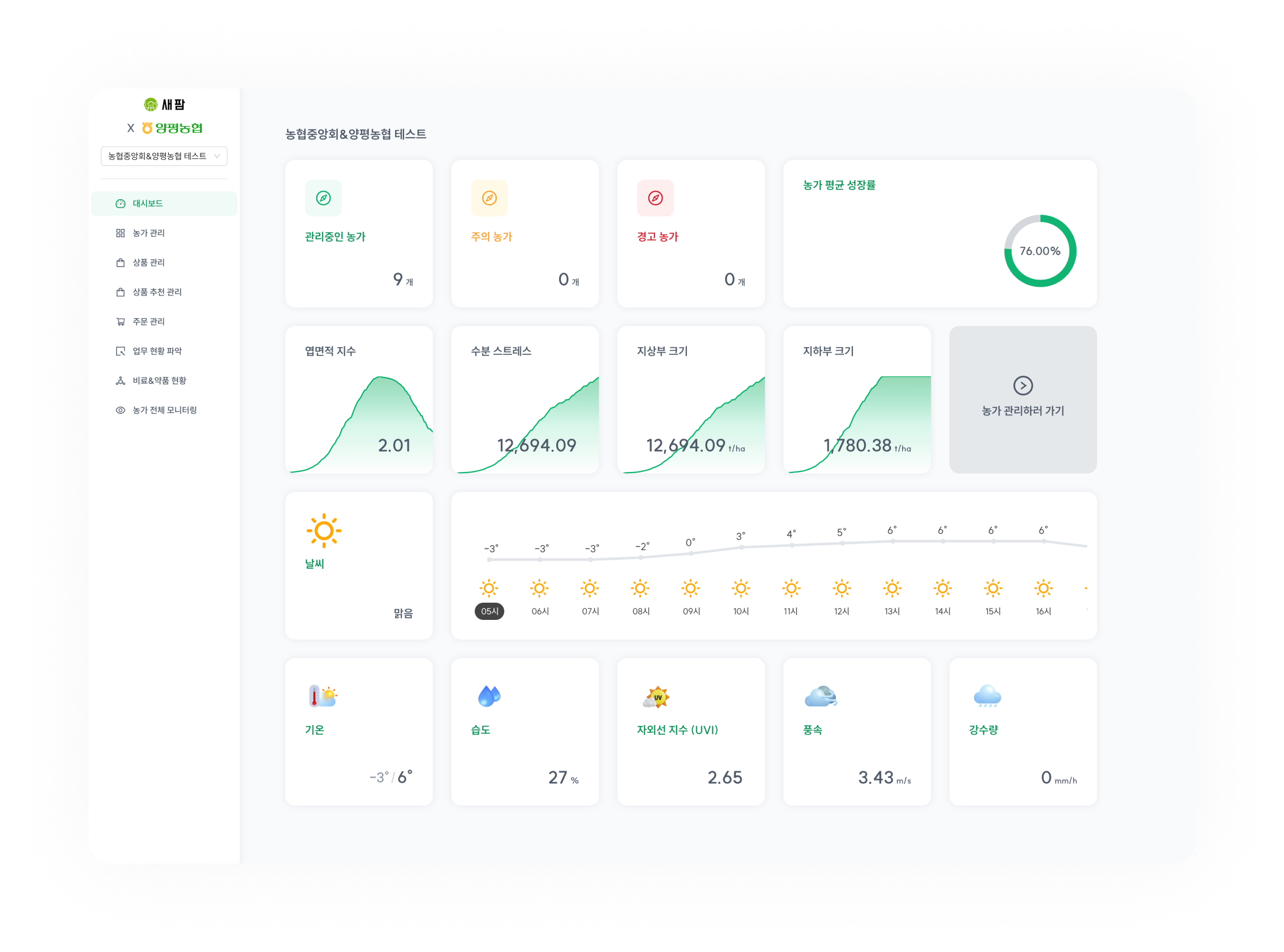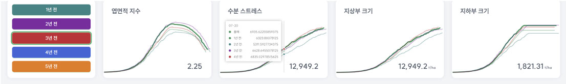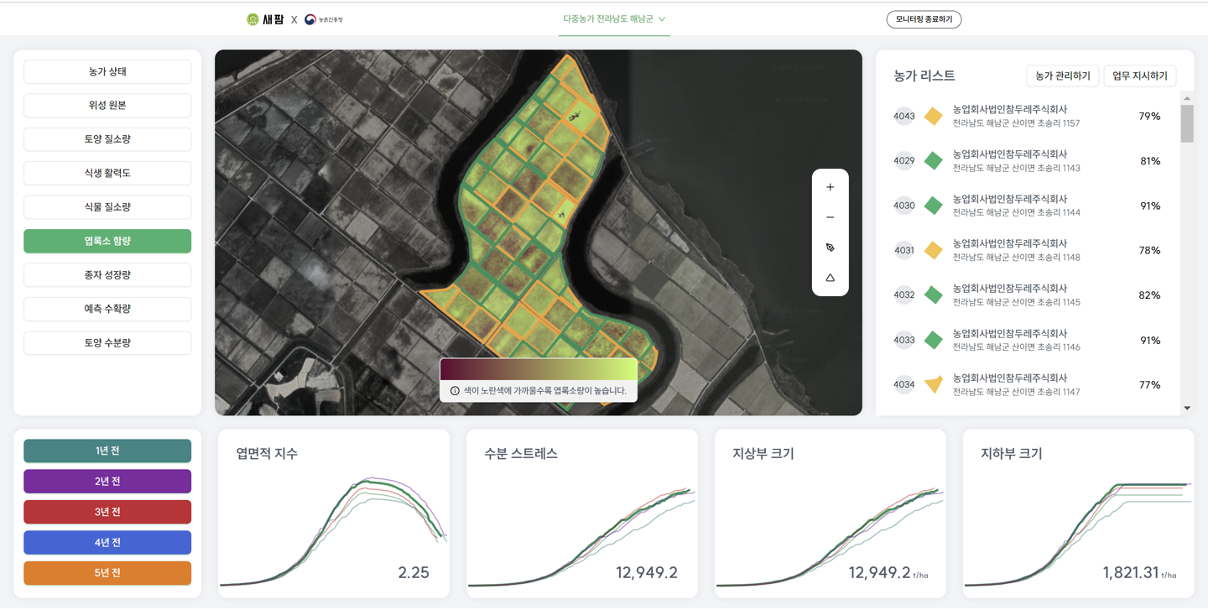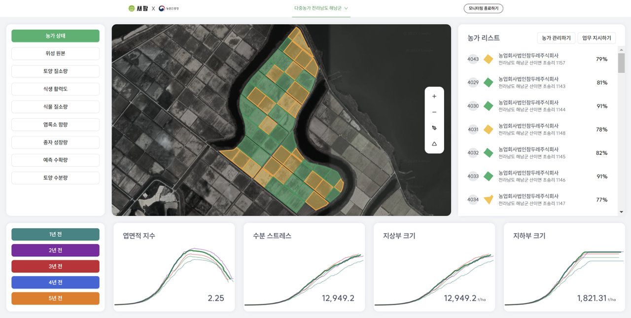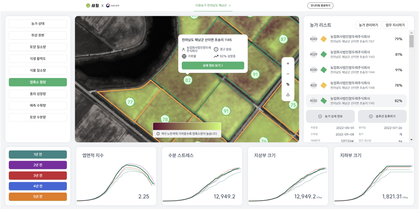 Check crop growth statusBy checking the growth status of crops for each farm through satellites, we compare, analyze, and inform about areas that need management.