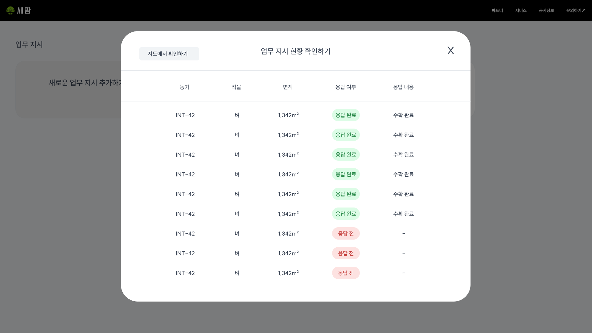 농가 관리 및 업무 지시농가별로 지시한 농작업을 시행한 농가들을 확인하고 관리가 필요한 농가들의 현황을 파악할 수 있습니다.
