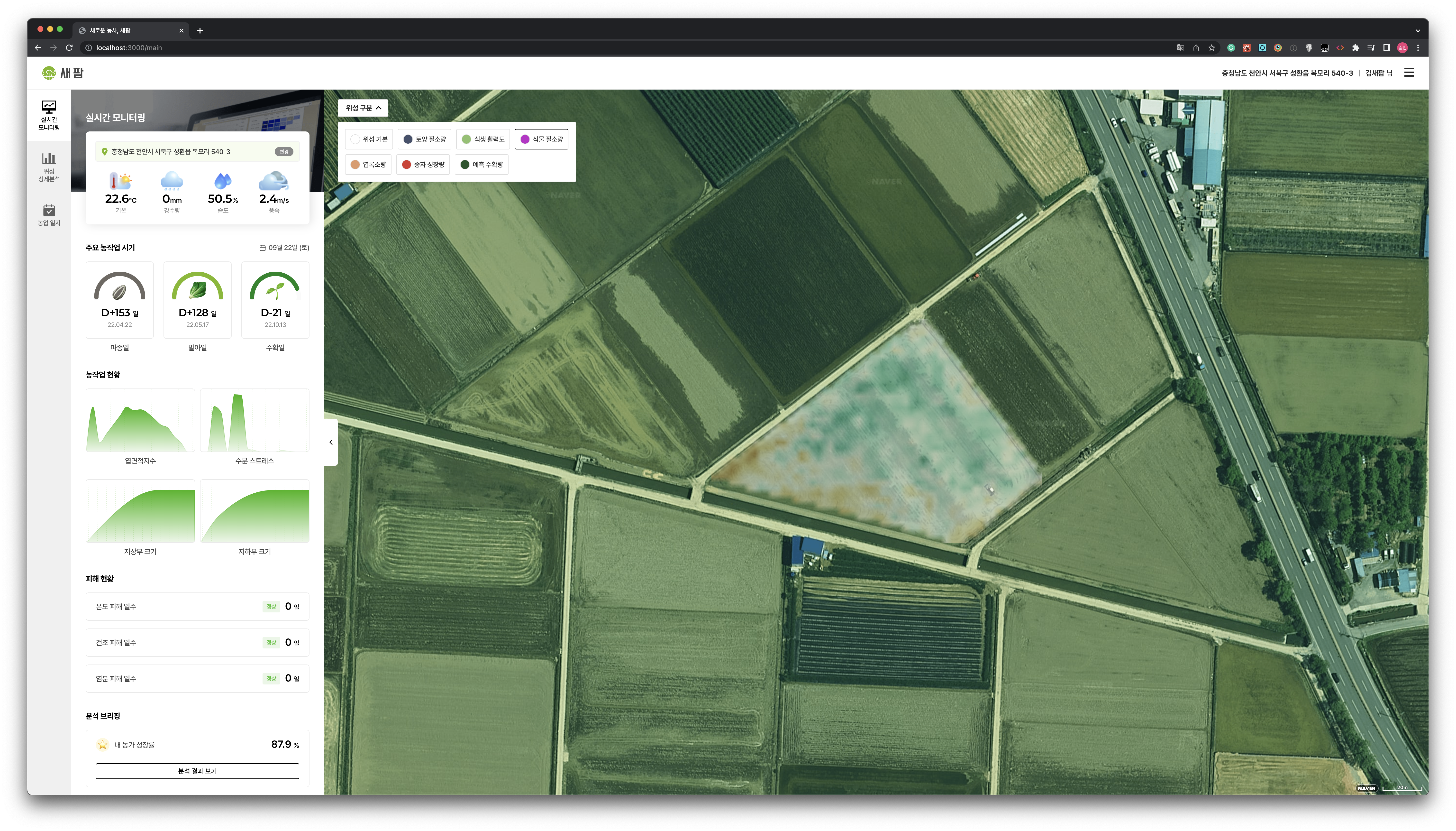 필지 모니터링본인 필지를 직접 모니터링하여 원격으로 현재 필지 상태와 앞으로의 상태를 파악합니다.