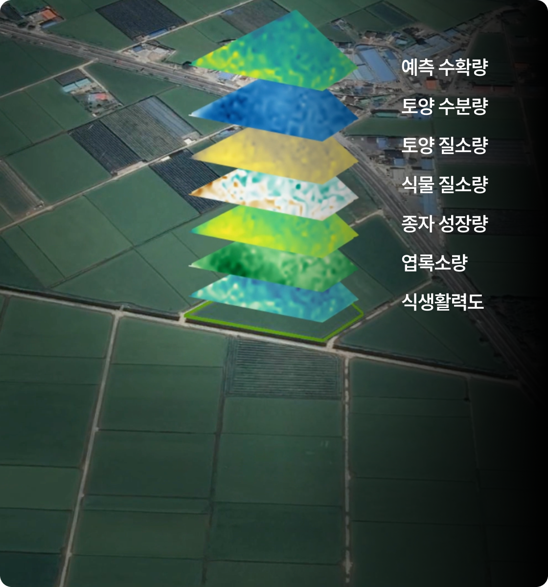 based on satellite data.Daily farming status Soil status (soil moisture and nitrogen content, etc.), Crop status (leaf size, chlorophyll content, seed growth, etc.), Weather conditions are collected from satellite data.